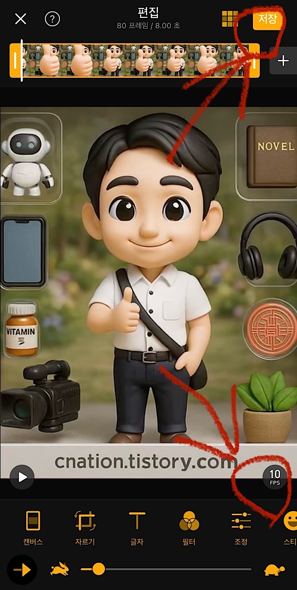 이제 드디어, 세상에 하나뿐인 나만의 움직이는 이모티콘 완성!