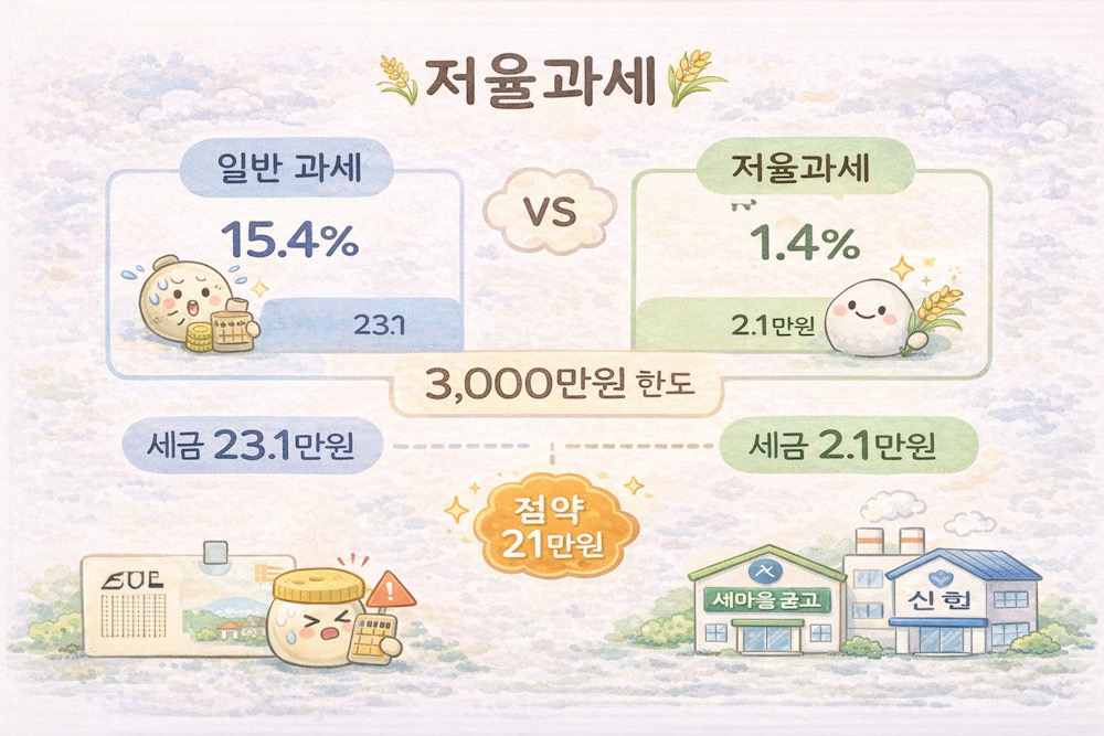 이자에는 기본적으로 15.4% 세금이 붙지만, 상호금융 우대(저율과세)나 비과세종합저축 같은 예외도 있어서 “내 조건”을 확인하면 절세에 도움이 된다.
