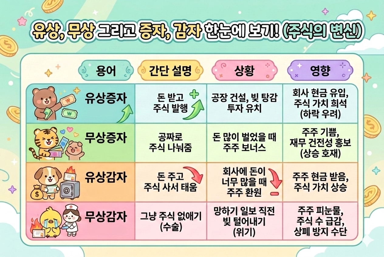 주식 투자자라면 내가 가진 종목이 "증자한다", "감자한다"는 소식에 귀를 쫑긋 세워야 합니다. 그 소식 안에 회사가 '공장을 지으려는 건지(성장)', 아니면 '빚에 허덕이는 건지(위기)'가 담겨 있기 때문이죠.
